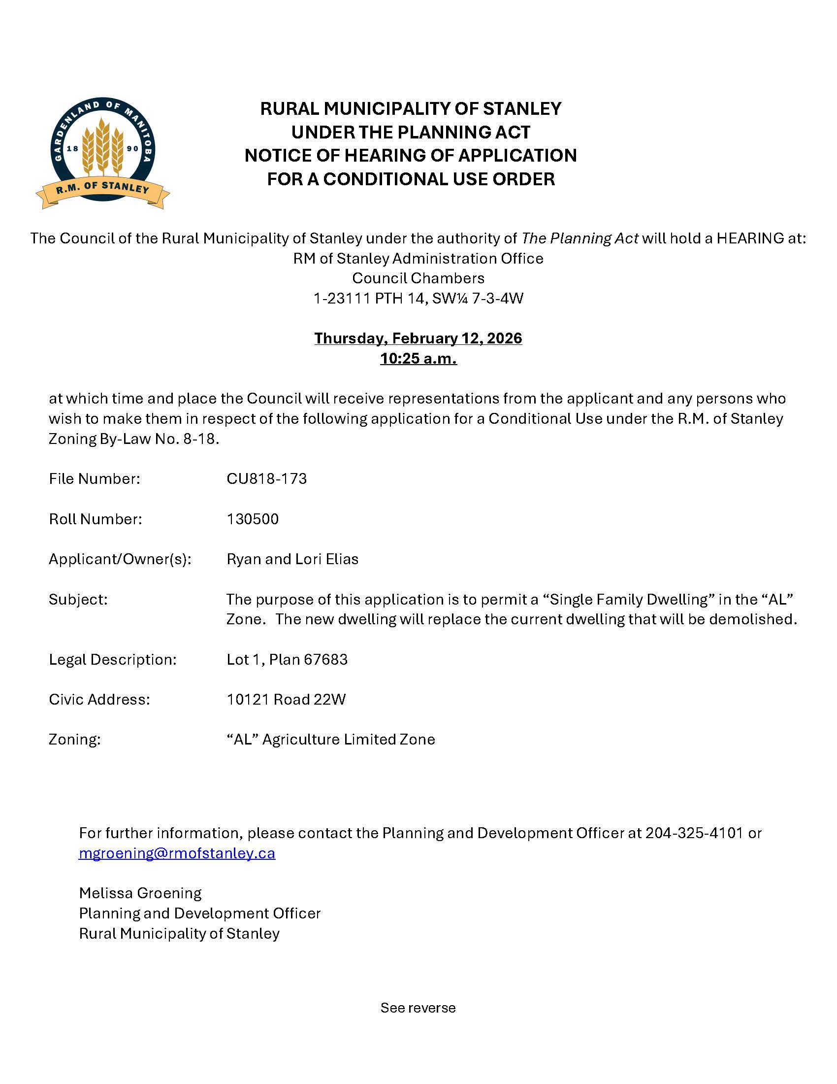 Notice of Public Hearing CU818-173
