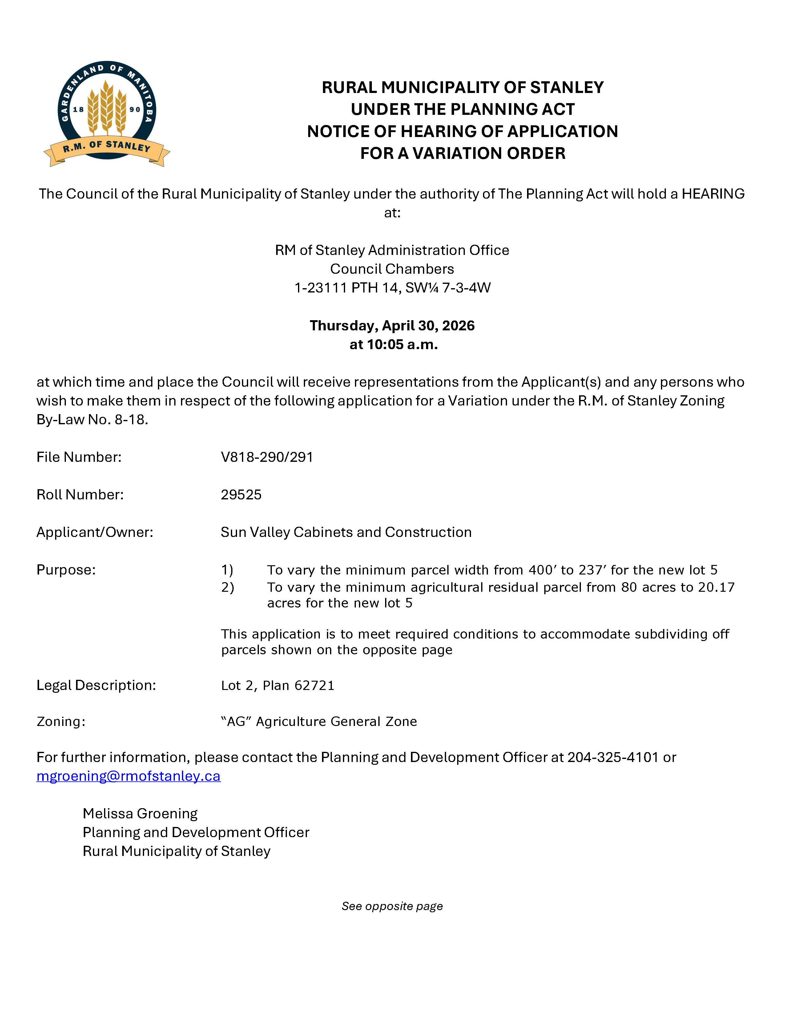 Notice of Public Hearing V818-290/291