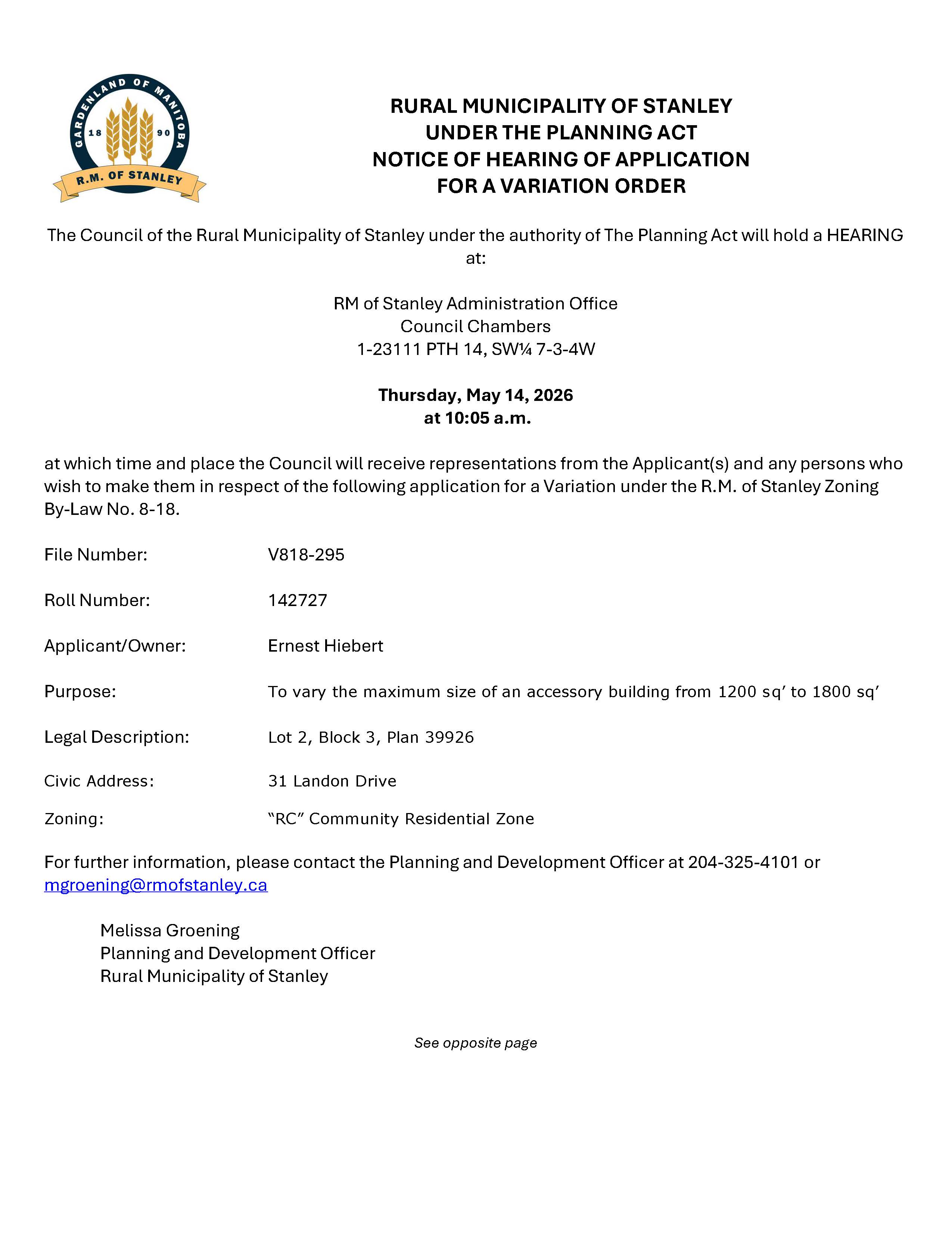 Notice of Public Hearing V818-295