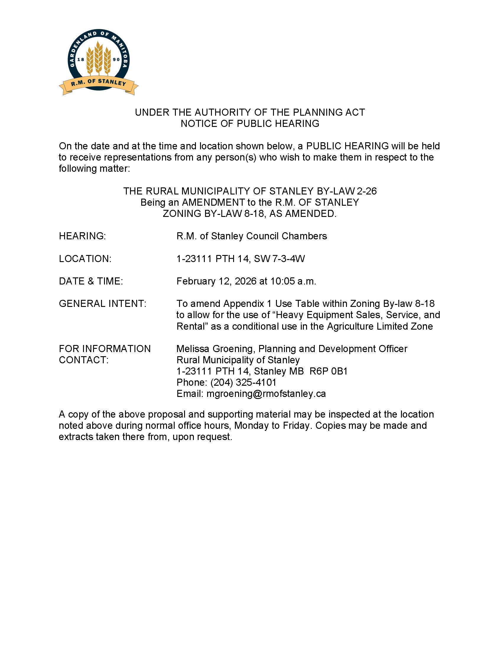 Notice of Public Hearing By-law 2-26