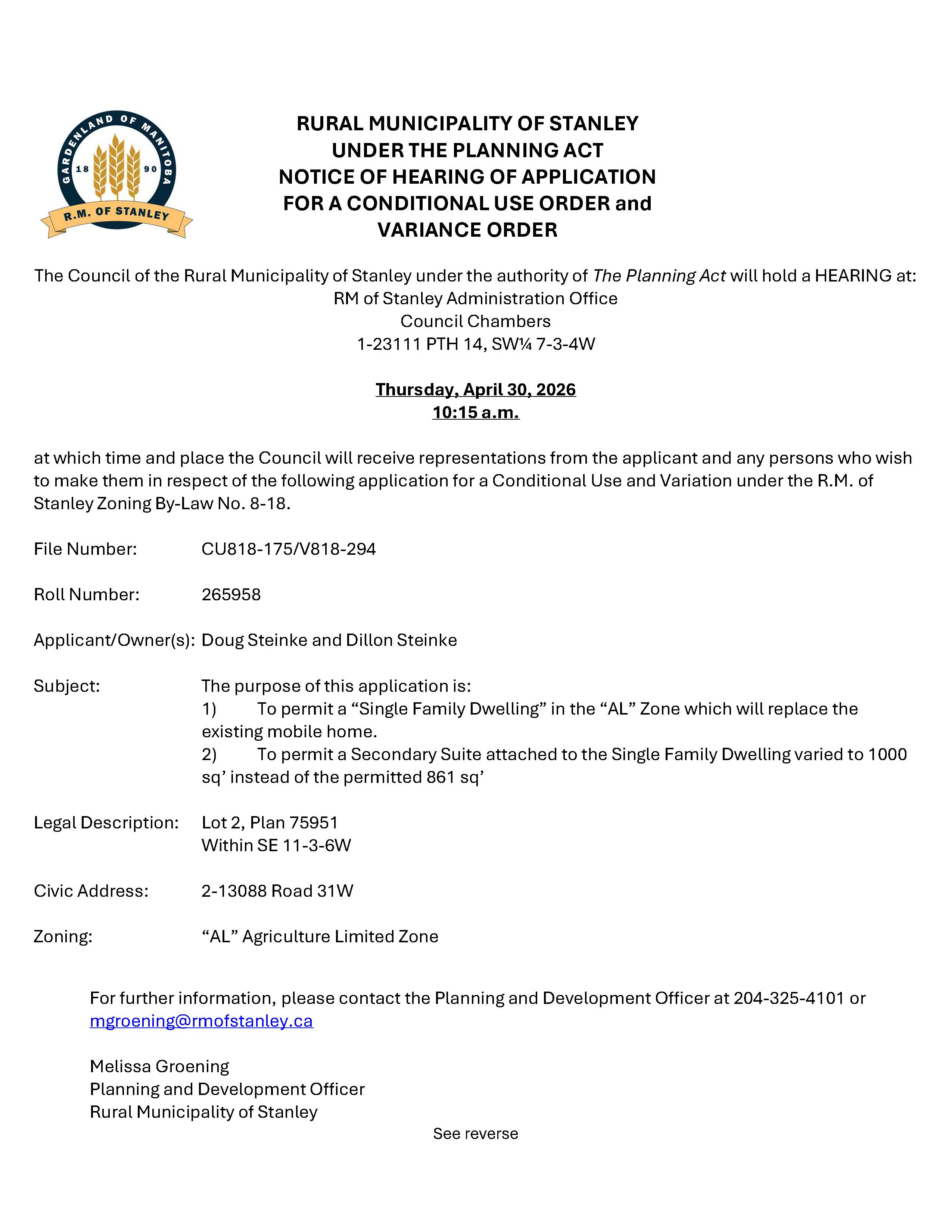 Notice of Public Hearing CU818-294/V818-175