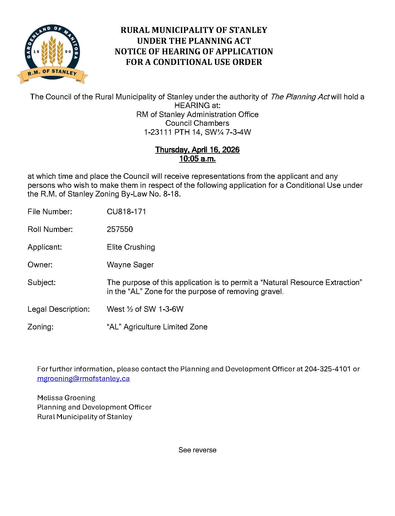 Notice of Public Hearing CU818-171
